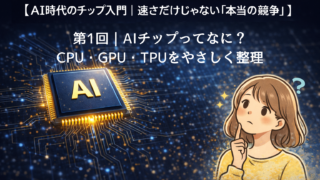 AIチップ、CPU、GPU、TPUの違いを整理しながら、AI時代にチップがなぜ注目されているのかを解説します。技術の細部ではなく、全体の構図をつかむための入門記事です。