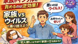 家族がインフルに感染したとき「誰のせい?」が始まると家庭が荒れます。本記事では実体験をもとに、感染者を責めない考え方、声かけテンプレ、NGワードを紹介します。