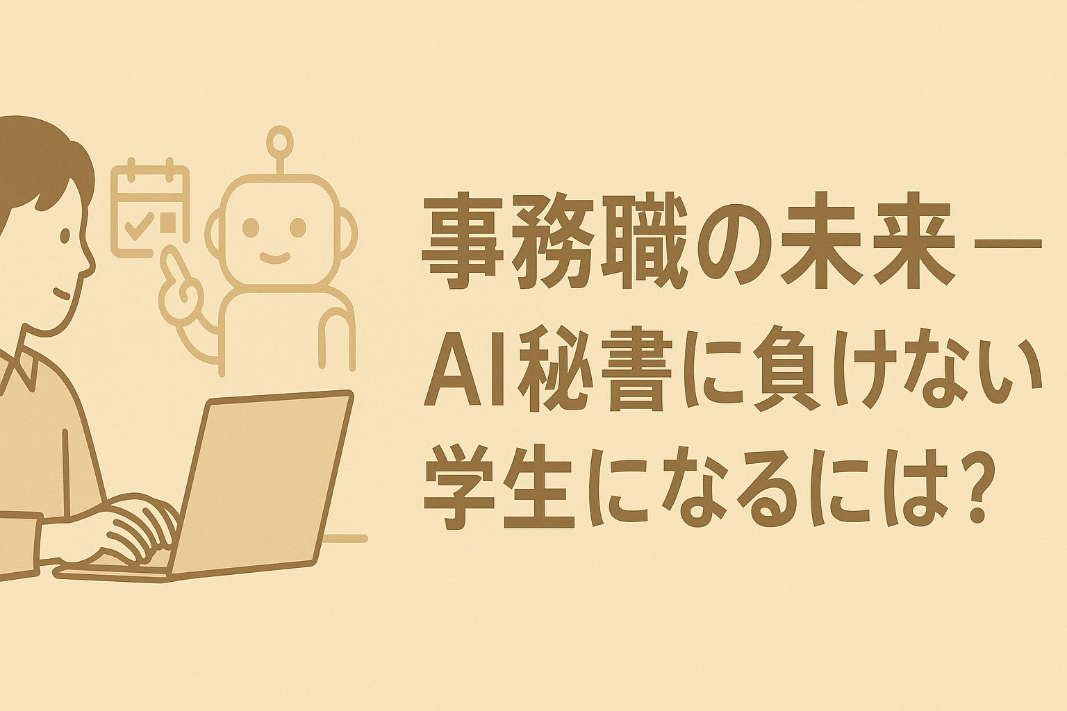 AIと未来 事務職の未来 ― AI秘書に負けない学生になるには? AIが事務作業を効率化する時代。学生が就職で評価されるには「コミュニケーション力・デジタルスキル・問題解決力」を磨くことが必須です。 2025.10.01 AIと未来AI時代の就活ナビ|プラスアルファの仕事図鑑キャリア・就活学生向け留学生向け