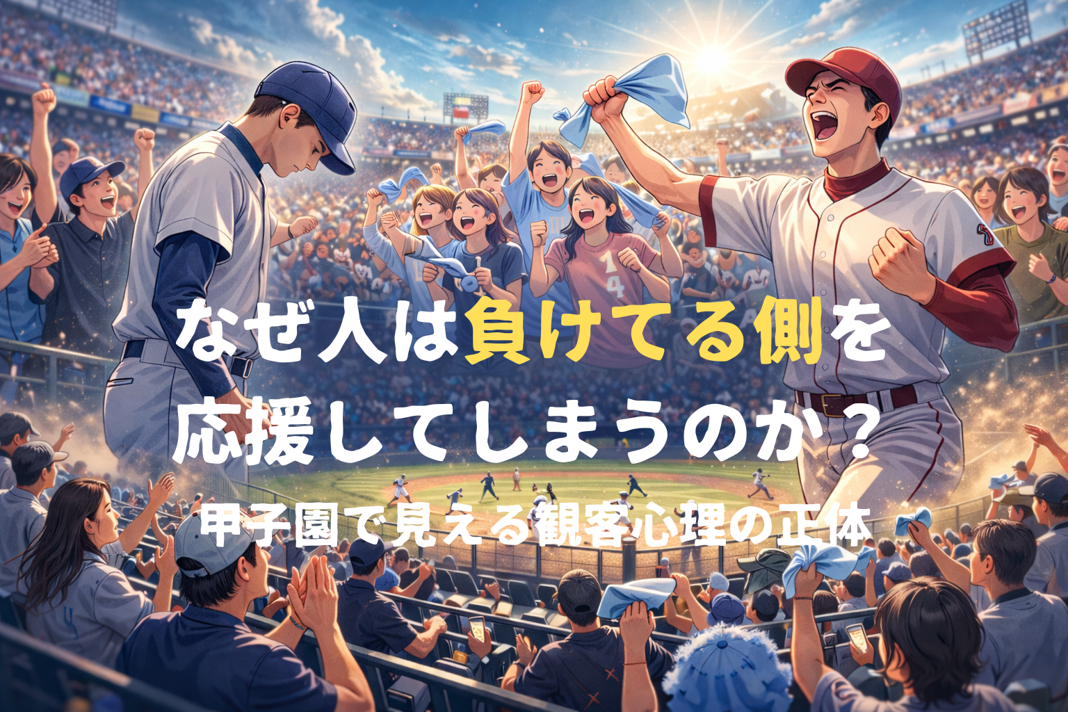 どちらの学校のファンでもない観客が、負けているチームを強く応援し始める――そんな場面です。